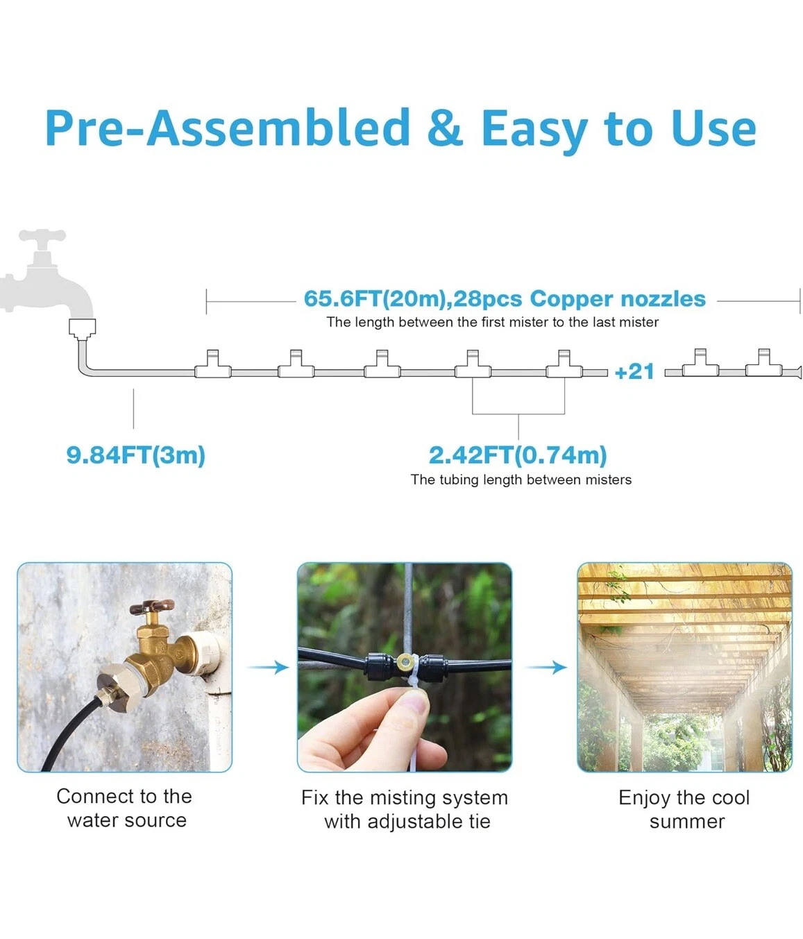 Enjoy the outdoors with the Bonviee Misters for Outside Patio. This 75FT misting cooling system is perfect for your patio and provides a fine mist spray pattern. It comes with an ergonomic connector and is designed for easy use.