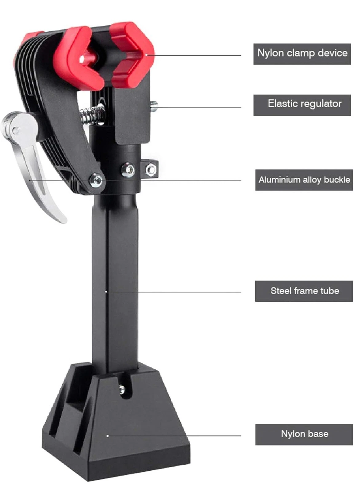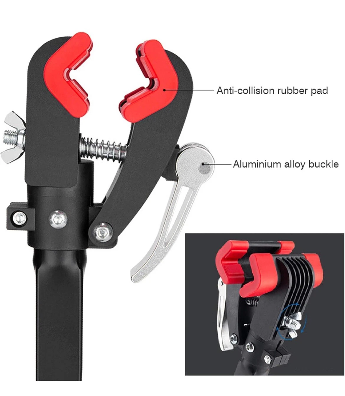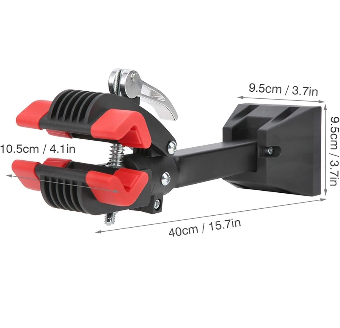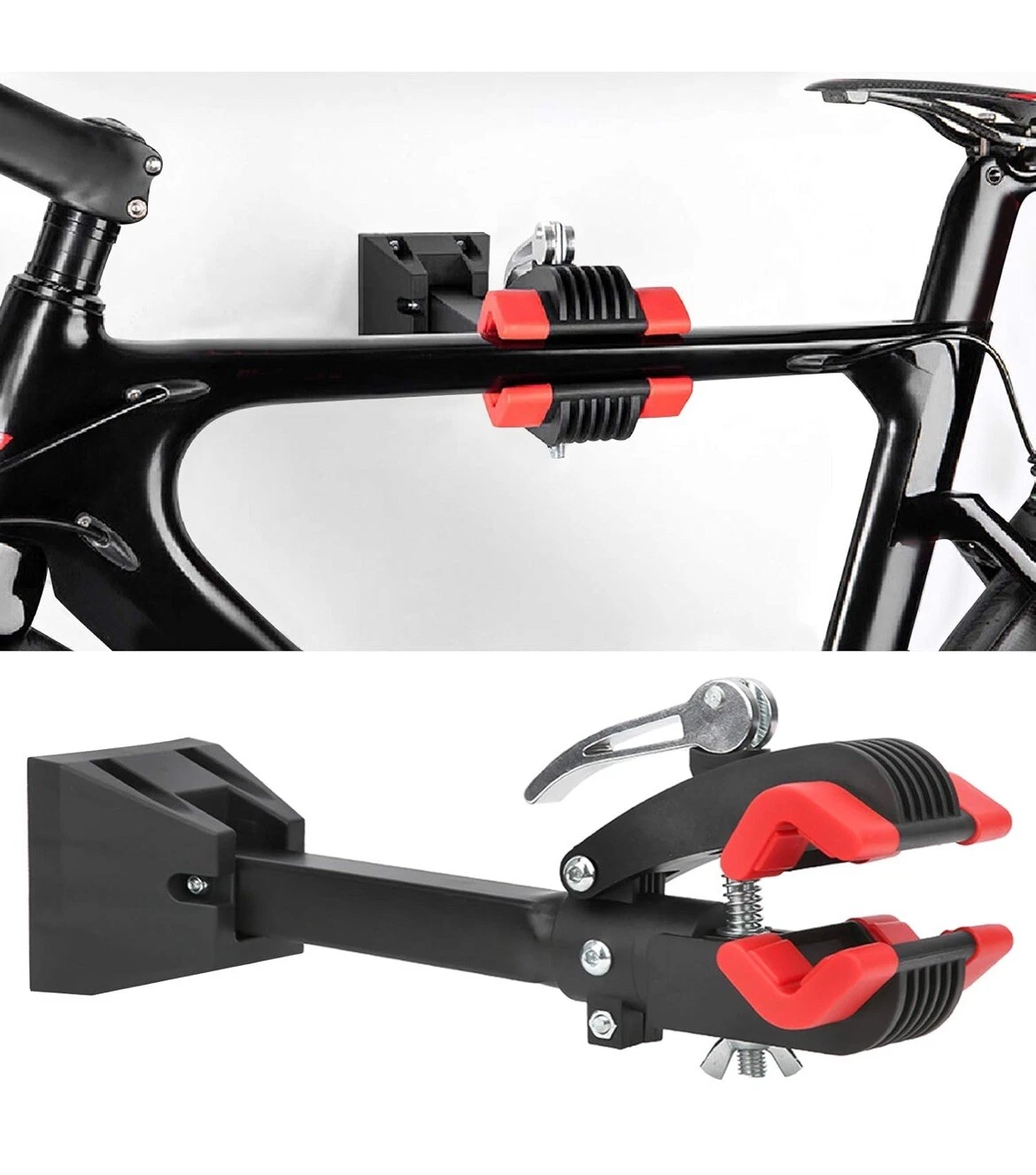 The CX-11 Bike Wall Hook Hanger is a black metal bike repair stand designed by Pro Bike Tool. It has a maximum load capacity of 34 kg and can hold one bike securely in place. The unit is wall-mounted and has a height of 15 inches, making it ideal for indoor bike storage in garages or other spaces. This bike rack is a convenient and space-saving solution for storing and working on your bicycle.