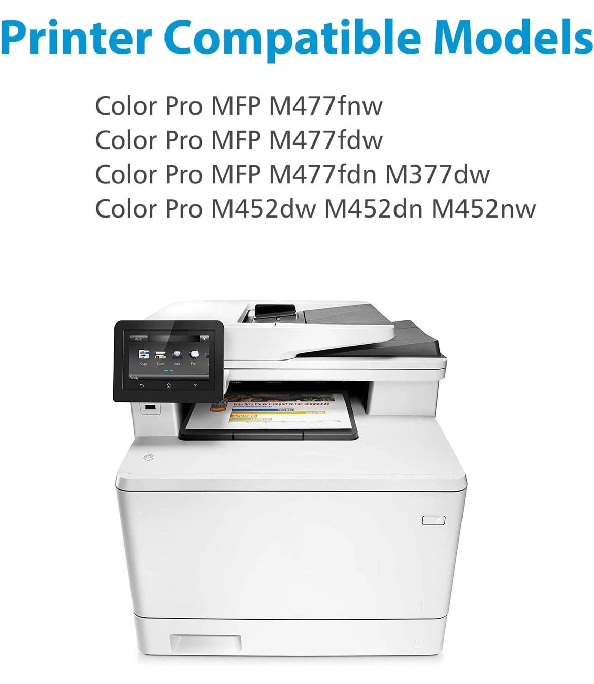 Compatible Brand For HP Print Technology Laser Color Black Compatible Model For HP Color LaserJet Pro MFP M477fdw For HP Color LaserJet Pro MFP M477fnw For HP Color LaserJet Pro MFP M477fdn ?For HP Color LaserJet Pro MFP M377dw For HP Color LaserJet Pro M452dn For HP Color LaserJet Pro M452nw For HP Color LaserJet Pro M452dw? Type Compatible Dimensions