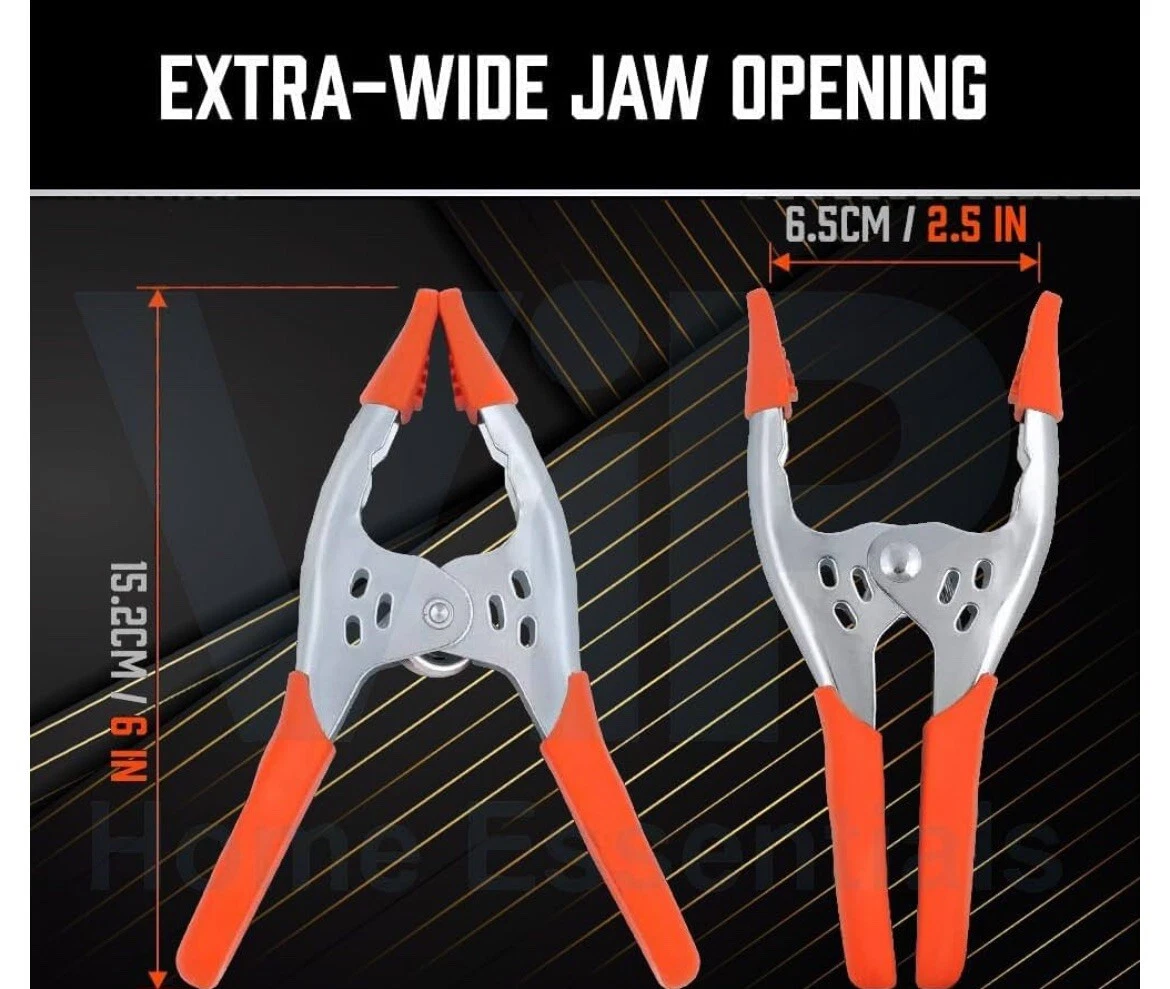 This set of three Heavy Duty spring clamps is perfect for any DIY project involving wood, metal, or fabric. With a 6-inch size and 2.5″ jaw opening, these clamps are designed for heavy-duty use. The orange color adds a pop of brightness to your tool collection.