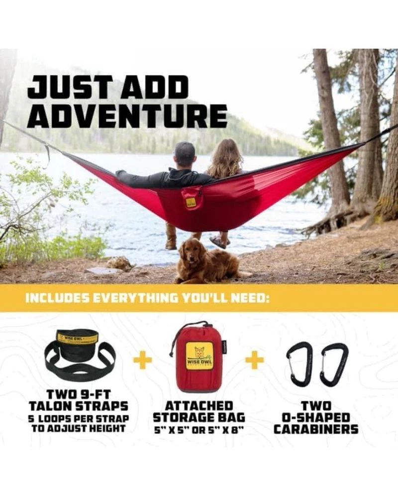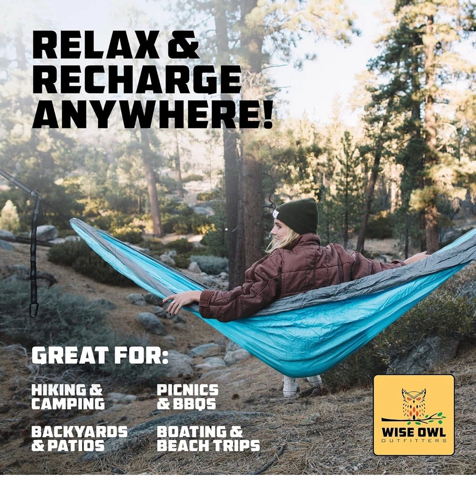 Wise Owl Outfitters Hammock for Camping Hammocks Gear for The Outdoors Backpacking Survival or Travel – Portable Lightweight Parachute Nylon – Up to 500lbs